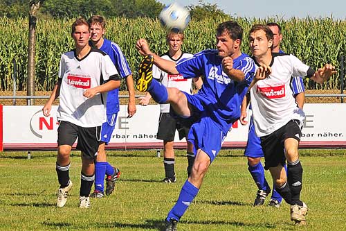 Eine klare und verdiente Niederlage setzte es im ersten Saisonspiel gegen den SV Alesheim. Unsere Mannschaft verweigerte überwiegend die Zweikämpfe und machte es den Gästen einfach 5 Tore zu erzielen. Den ersten Torschuss setzte Hannes Hager neben das Tor. Genauer zielte der Alesheimer Hoyer in der 11. Minute. Sein Lupfer aus halblinker Position landete im langen Eck zur Führung für den SVA. Bernd Gronauer traf wenig später nach einer Flanke den Ball nicht richtig und köpfte neben das Tor. Die nächste Alesheimer-Möglichkeit