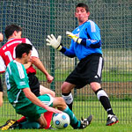 Die erste Großchance hatte Bieswangs Richard Weddige. Nach schönem Doppelpass