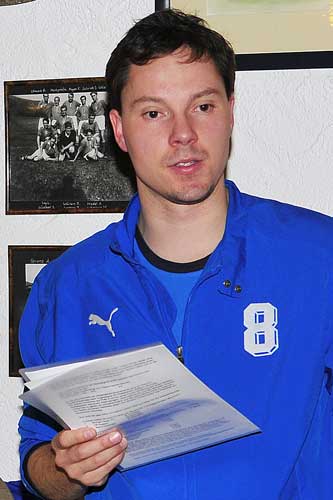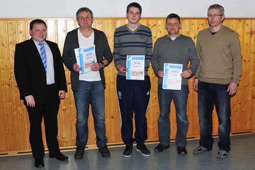 Jochen Schwenk für die Erste Mannschaft, Michael Oeder für die Zweite Mannschaft, Lena Schmidt für die Frauenmannschaft und Wolfgang Schmidt für die AH-Mannschaft.