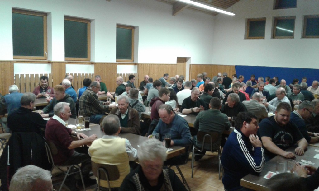 1. Vorsitzender Thomas Rachinger konnte mit 120 Besuchern (30 Partien) viele Besucherinnen und Besucher begrüßen. Nach zwei Runden Karteln und einer zwischenzeitlichen deftigen Brotzeit für alle, stand nach Mitternacht der souveräne Sieger aus Geislohe fest. Christian Neulinger hatte einen blendenden Abend erwischt und konnte stattliche 151 Punkte (bei 8 Soli) erreichen und den Hauptgewinn, 200 Euro in bar, für sich verbuchen.