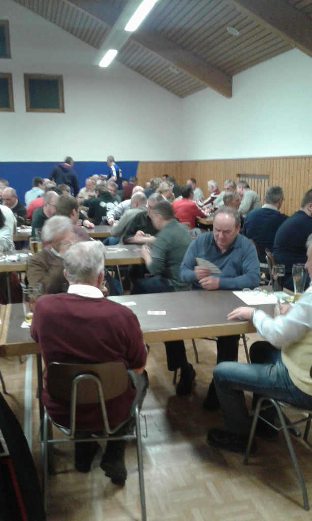 Interessant waren auch die Herkunftsorte der Kartler. Die weitest entfernten Schafkopfer kamen aus Dittenheim, Dornhausen, Greding, Gunzenhausen, Muhr am See, Munningen, Rieshofen und Untersteinbach. Starke 21 Teilnehmer kamen direkt aus Bieswang, darunter einige richtig junge Akteure. Auch neun Damen fanden den Weg zum Spiel in die Halle der SF Bieswang.